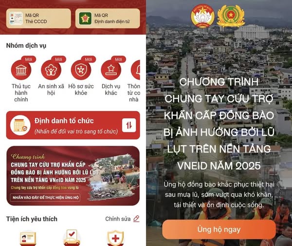 Thông qua nền tảng VNeID, Cục Cảnh sát Quản lý hành chính về trật tự xã hội (C06, Bộ Công an) mong muốn nhân dân cả nước ủng hộ đồng bào chịu ảnh hưởng của bão lũ khắc phục hậu quả.