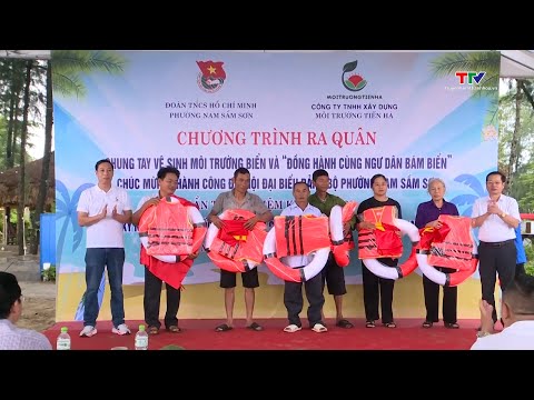 Phường Nam Sầm Sơn ra quân làm sạch biển và tặng cờ Tổ quốc cho ngư dân